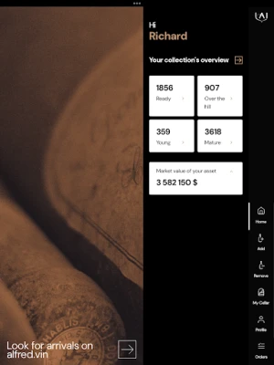 الفرڈ متحرک طور پر آپ کی انوینٹری کو تازہ ترین رکھتا ہے، ہر نئی آمد یا کھپت کے ساتھ آپ کے ذخیرے کی صورتحال کو فوراً اپ ڈیٹ کرتا ہے۔ یہ مسلسل نگرانی اس بات کو یقینی بناتی ہے کہ آپ کے پاس ہمیشہ اپنے مجموعے کی تازہ ترین اور درست معلومات موجود ہوں۔ اس کے علاوہ، الفرڈ کے اراکین کو Alfred.vin پر نئی آنے والی مصنوعات تک خصوصی رسائی حاصل ہوتی ہے، جہاں وہ منفرد اور نایاب اشیاء دریافت کر سکتے ہیں۔ الفرڈ کے وسیع ڈیٹا بیس تک خصوصی رسائی بھی ملتی ہے، جو آپ کے علم میں اضافہ کرتی ہے اور آپ کو باخبر فیصلے کرنے میں مدد دیتی ہے۔ الفرڈ کے ساتھ، آپ کا شوق ایک منظم اور ذہین تجربہ بن جاتا ہے۔