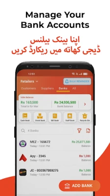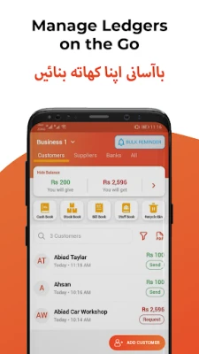 DigiKhata آپ کو اپنے صارفین اور سپلائرز کے لیے ڈیجیٹل کھاتے بنانے کی سہولت فراہم کرتا ہے، جنہیں آپ مفت PDF رپورٹس کی شکل میں ڈاؤن لوڈ کر سکتے ہیں۔ عملے کی حاضری، تنخواہوں، اوور ٹائم اور بونس کا انتظام بھی اسی پلیٹ فارم پر کریں۔ نقد رقم کی آمد و رفت کو آسانی سے درج کریں اور اپنے یومیہ کیش ان ہینڈ کو موثر طریقے سے سنبھالیں۔ اسٹاک کی مکمل ٹریکنگ سے لے کر ڈیجیٹل بلز اور انوائسز بنانے تک، اور انہیں WhatsApp پر فوری شیئر کرنے تک، ہر کام آسانی سے ممکن ہے۔ بینک بیلنس کو ریکارڈ کرنے کے لیے ایک علیحدہ بینک بک بھی موجود ہے۔