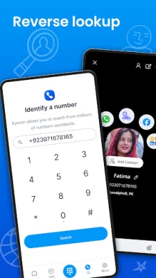 Eyecon کی نمایاں خصوصیات کے ساتھ اپنے رابطوں پر مکمل کنٹرول حاصل کریں۔ سپیم کالز اور غیر ضروری ایس ایم ایس سے چھٹکارا پائیں، کیونکہ Eyecon انہیں پہچان کر بلاک کرنے کی سہولت فراہم کرتا ہے۔ آپ کی ایڈریس بک اب محض ایک فہرست نہیں بلکہ ایک متحرک بصری گیلری بن جاتی ہے، جہاں ہر رابطہ ایک تصویر کے ساتھ نمایاں ہوتا ہے۔ مزید برآں، Eyecon آپ کی ترجیحی مواصلاتی طریقوں کو یاد رکھتا ہے، چاہے وہ واٹس ایپ، فیس بک، یا عام ایس ایم ایس ہو، اور آپ کو ایک ہی جگہ سے آسانی سے پیغامات بھیجنے یا کالز شروع کرنے میں مدد دیتا ہے۔ اس کی ریورس لوک اپ خصوصیت آپ کو اپنے رابطوں کے ڈیجیٹل پروفائلز، جیسے کہ فیس بک، تک رسائی فراہم کرتی ہے، تاکہ آپ گہرائی میں ان کے بارے میں جان سکیں۔