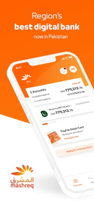 Mashreq کی عالمی ایوارڈ یافتہ ڈیجیٹل بینکنگ ایپ کے ساتھ چلتے پھرتے ہموار، مؤثر اور محفوظ بینکنگ کا تجربہ کریں۔ یہ ایپ پاکستان میں آپ کی مالی ضروریات کو آسان بنانے اور لاکھوں صارفین کا اعتماد جیتنے کے لیے ڈیزائن کی گئی ہے۔